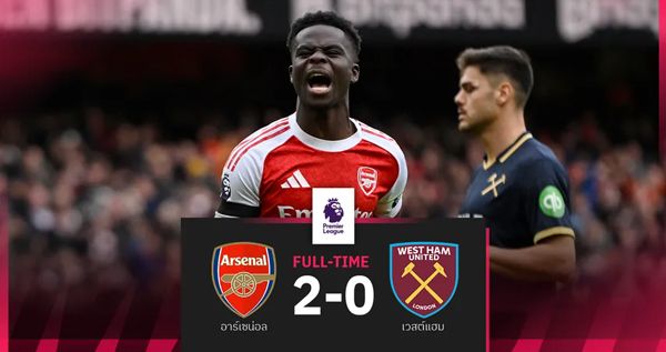 เวลาที่เหลือไม่มีประตูเพิ่ม จบเกม อาร์เซน่อล เอาชนะ เวสต์แฮม 2-0 เก็บเพิ่มเป็น 16 แต้มขยับแซง ลิเวอร์พูล ขึ้นไปรั้งจ่าฝูง ก่อนที่ “หงส์แดง” มีคิวบุกไปเยือน เชลซี คู่ถัดไป