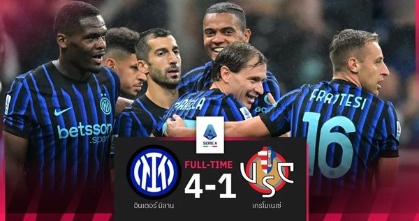 อินเตอร์ มิลาน โชว์ฟอร์มดุเปิดบ้านถล่ม เครโมเนเซ่ 4-1 ศึกกัลโช่ เซเรีย อา จากผลงาน โยอัน บอนนี่ ยิง 1 จ่าย 3 พาทีมซิวชัย พรวดขึ้นอันดับ 4 มี 12 คะแนน